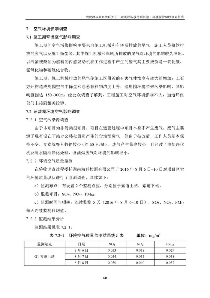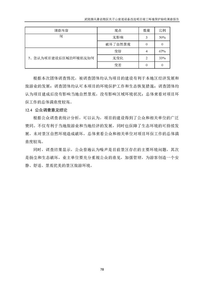 武陵源天子山索道設(shè)備改造駿工環(huán)保驗(yàn)收調(diào)查報(bào)告