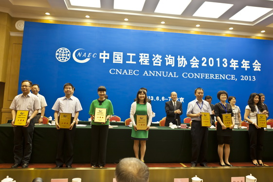 為了表彰和獎(jiǎng)勵(lì)在我國(guó)工程咨詢(xún)業(yè)務(wù)中做出突出貢獻(xiàn)的集體和個(gè)人,推動(dòng)全國(guó)工程咨詢(xún)業(yè)不斷提高服務(wù)質(zhì)量和水平,更好地為經(jīng)濟(jì)建設(shè)服務(wù),年會(huì)還舉辦了2012年度全國(guó)優(yōu)秀工程咨詢(xún)成果頒獎(jiǎng)儀式。我中心編制的《湖南省“兩型社會(huì)”建設(shè)重點(diǎn)課題——長(zhǎng)株潭城市群供水安全提質(zhì)方案專(zhuān)題研究報(bào)告 》獲得全國(guó)優(yōu)秀咨詢(xún)成果二等獎(jiǎng),并作為推選的30個(gè)獲獎(jiǎng)代表之一上主席臺(tái)領(lǐng)獎(jiǎng)。