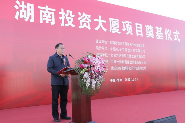 11月23日上午,(北京)湖南投資大廈項(xiàng)目奠基儀式在北京市豐臺(tái)區(qū)麗澤金融商務(wù)區(qū)隆重舉行。湖南省發(fā)展改革委黨組成員、湘西辦主任杜中華,湖南湘投控股集團(tuán)公司黨委書記、董事長鄧軍民,黨委副書記、董事張崇政,北京麗澤金融商務(wù)區(qū)管委會(huì)副主任關(guān)芳,北京麗澤金融商務(wù)區(qū)控股公司董事長楊友強(qiáng),湖南省國際工程咨詢公司黨委書記、董事長詹瓊雷,黨委副書記、總經(jīng)理曹雄鷹,中建一局(集團(tuán))有限公司副總經(jīng)理左強(qiáng),中建一局建設(shè)發(fā)展有限公司董事長廖鋼林等近百人出席奠基儀式。儀式由張崇政副書記主持。